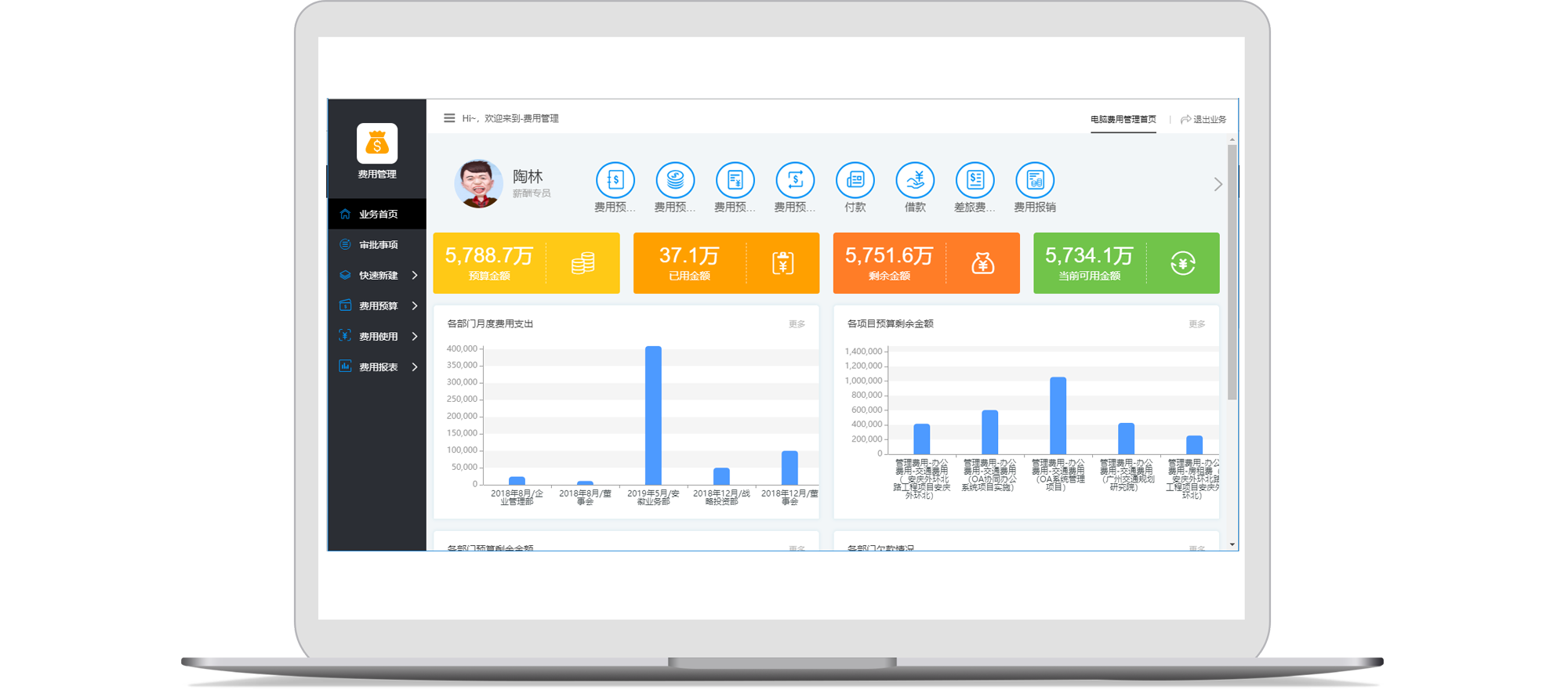費用預算:支持費用類別、費用預算信息、費用預算控制、費用預算編審、費用預算控制編審、查看部門費用預算;費用調整:支持費用預算調整、費用預算結轉;費用使用:支持借款、借款臺賬、付款、差旅費報銷、費用報銷;費用報表:主要支持查詢報表和統計報表。