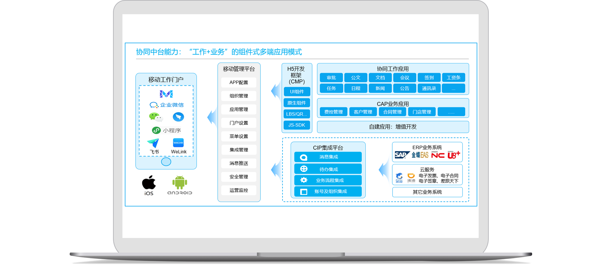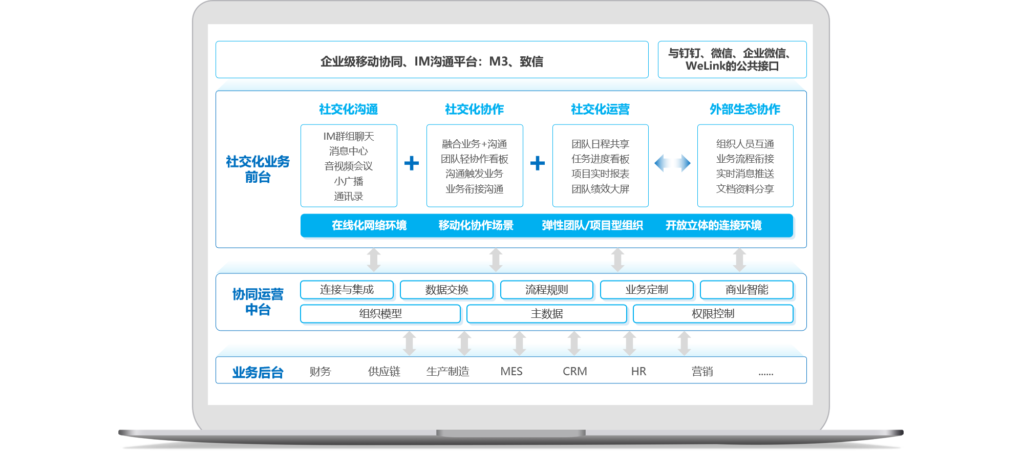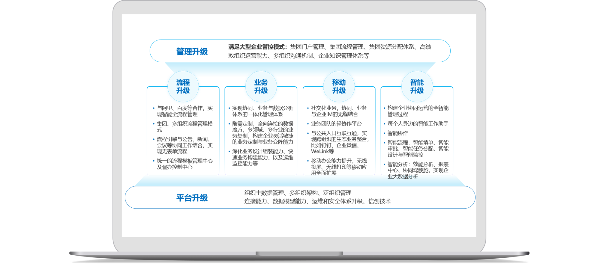 提供滿足中大型企業、集團企業應用業務場景和管理模式,進一步深化“協同”在企業管理運營中的價值,提升企業組織內部、產業鏈生態之間的協同效率,賦能企業數字化、智能化發展