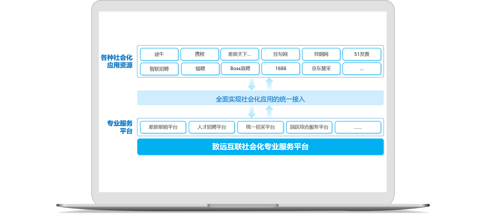 為加強企業對各種社會資源的連接聚合能力,打通各項業務的全程管理鏈路,A8+ V8.0 實現與商旅、人才招聘、采購等社會化服務的對接,比如和差旅天下、攜程等不同商旅應用服務合作的協同商旅服務平臺,幫企業打造從出差申請、訂票、報銷到財務對賬的全閉環差旅服務的統一業務流程。