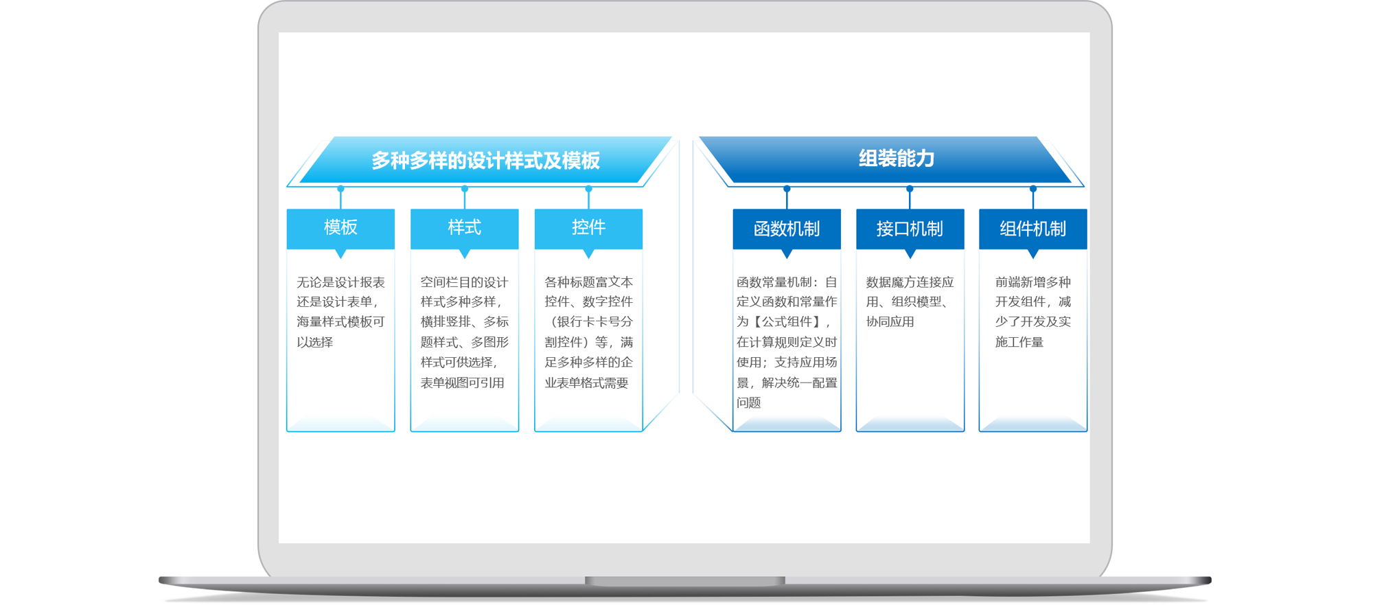 A8+ V8.0 進一步強化了CAP 平臺的業務設計和組裝能力,包括多種多樣的設計樣式及模板,基于函數機制、接口機制、組件機制的組裝能力,以及將來源于不同表單的視圖進行聚合顯示的視圖引用能力、基于公式組件的計算定義能力、 多人協同進行應用制作、集團和單位管理員統一查看和管理應用等能力。
