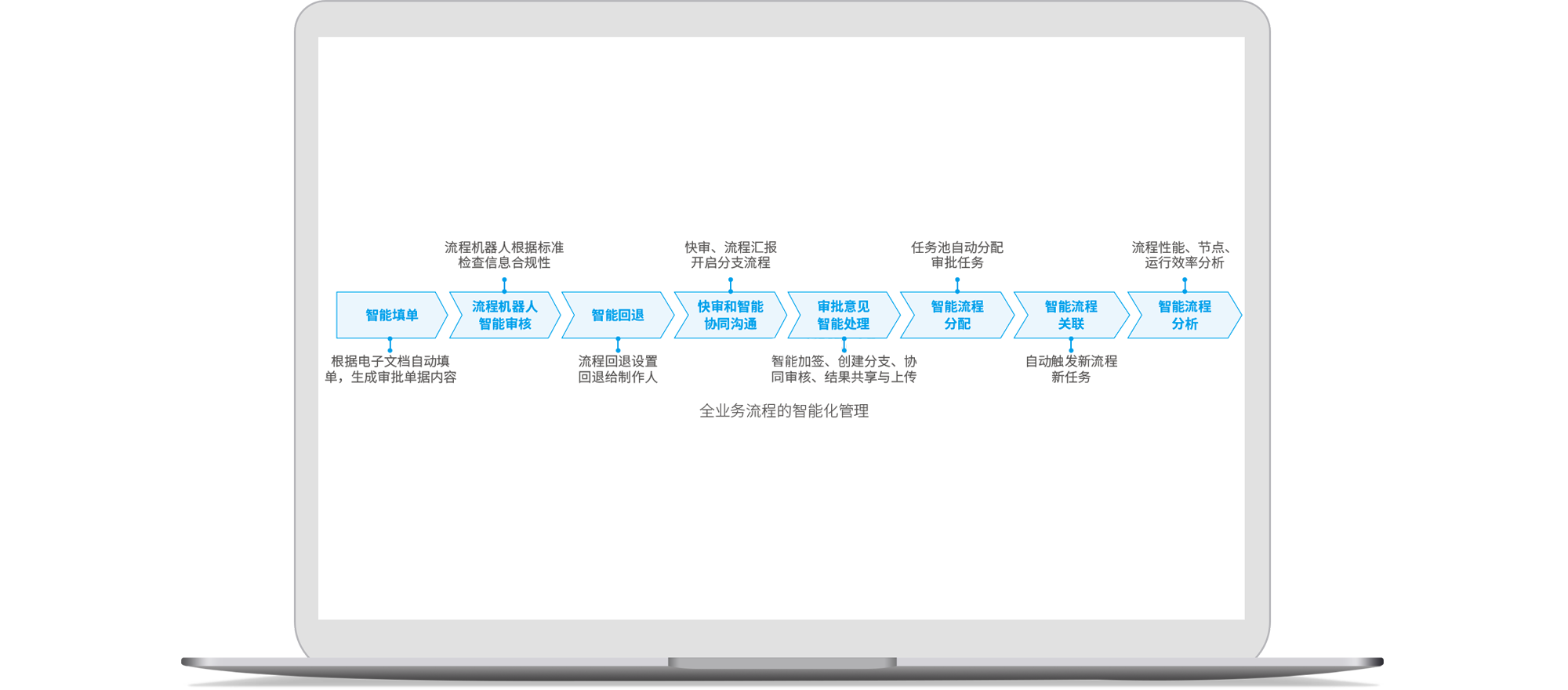 智能流程分配,針對集團公共的任務資源,系統會按照設置的流程規則智能分配,任務自動流轉到執行人的待辦中,達到工作任務合理化分配,系統還可對已分配的流程任務進行監控和動態調整。智能審批流程,企業員工只需要上傳電子合同,系統自動完成從電子合同到協同單據的轉換;在審批環節, AI 智能流程機器人代替人工完成預審批,讓審核過程化繁為簡,大大降低工作量,還提高了審批精準度。
