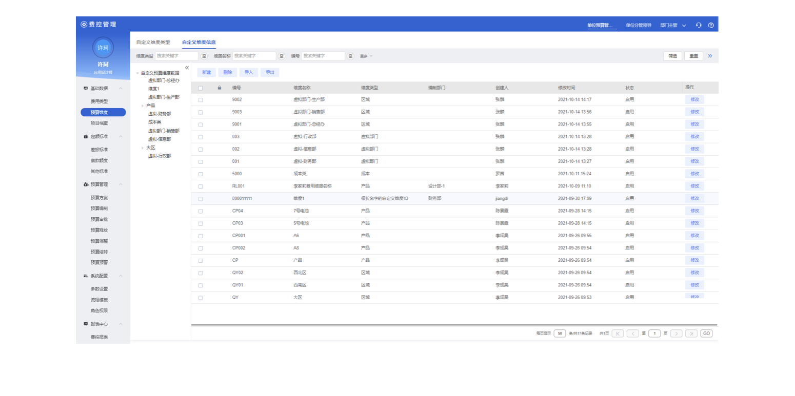 系統(tǒng)提供各類基礎(chǔ)數(shù)據(jù)定義,如費用類型,項目檔案,自定義維度等。