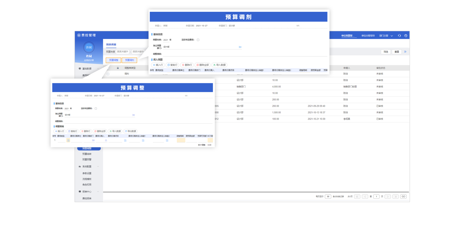 產(chǎn)品支持在會計期間與既定科目間進(jìn)行預(yù)算調(diào)整,如同部門不同科目間,同科目不同部門間,同部門不同月底間、同月度不同部門間等。