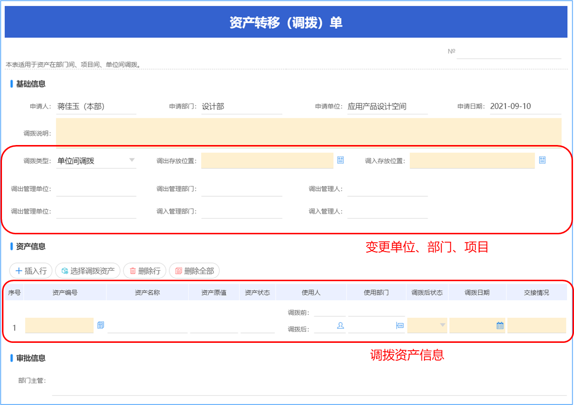 資產使用人、管理人發生變化的,應當及時辦理資產交接手續。 由資產使用人對資產進行歸還或移交處理,在歸還或移交時,根據資產使用人員自動檢索其名下所屬資產。資產歸還后,可再次被其他人領用。 資產管理人員可以根據資產在公司的分布情況進行資產轉移,資產轉移后完成成本中心之間的關系轉換,理清資產實物和卡片關系。