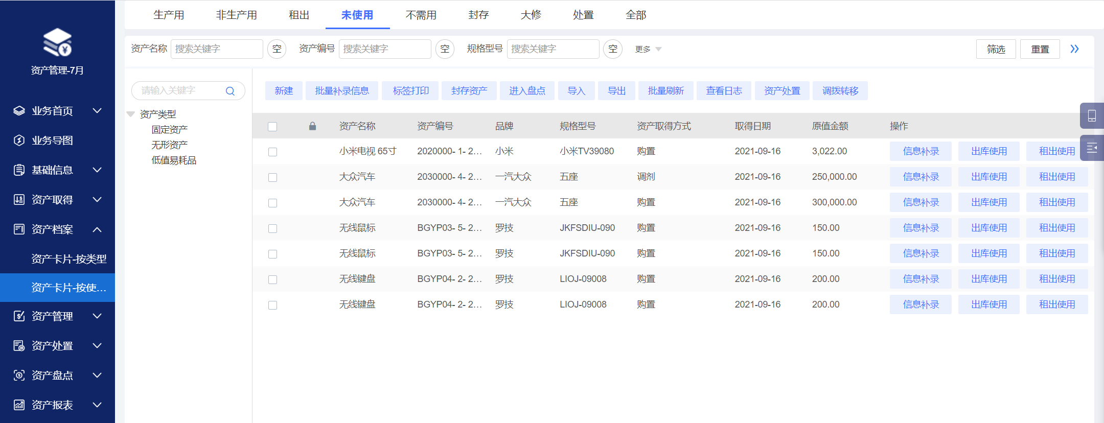 批量入庫,集中統一生成資產卡片