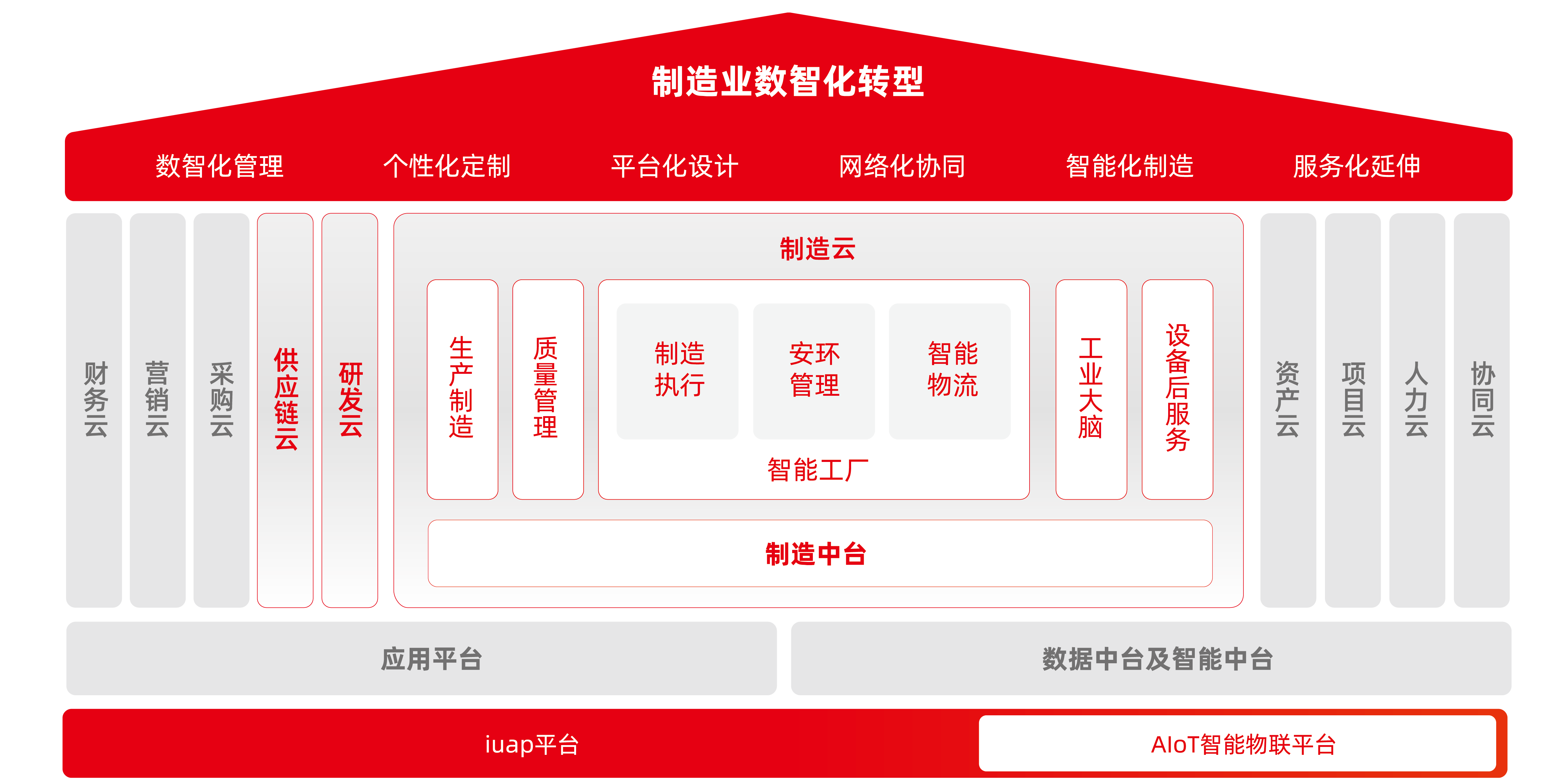 旨在為制造相關云服務提供公共支撐服務,包括工廠模型、計劃中心、車間作業中心、質檢中心、儲運中心、 輔助調度中心、智造算法中心等公共服務。